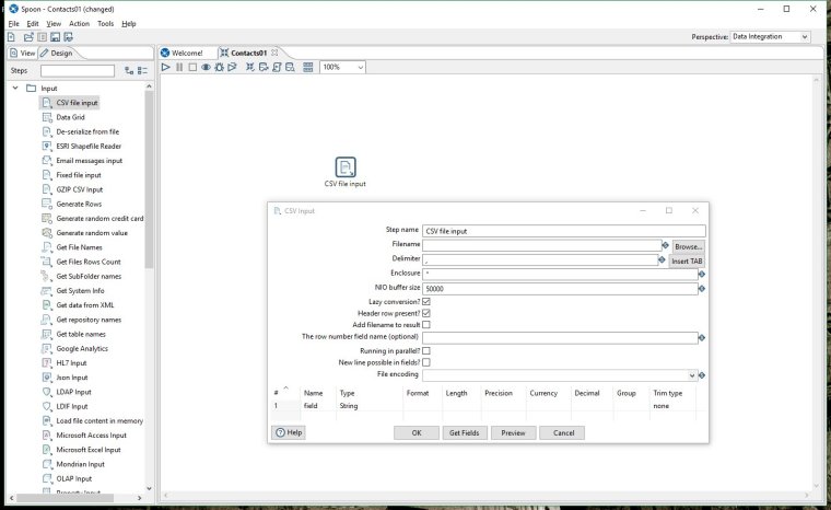 Close the preview window and click OK on the CSV input step to close the step properties. Now it's time to add a new step and do some manipulation.