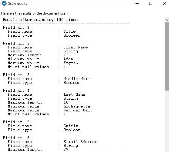 Click on the 'Get Fields' button at the bottom of the dialog box - when prompted leave the sample size as the default 100 lines. You will see the scan results.