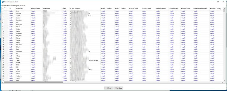 Close the scan window and now click on Preview to show us some of data - leave the default at 1000 rows. After a little processing you will get a table with rows of data from our CSV file. You can check that all the fields have been correctly identified and delimited.