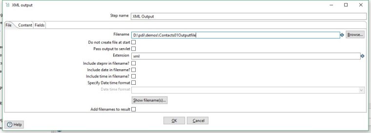 We're done with this step so click OK to close the XML Output step properties.