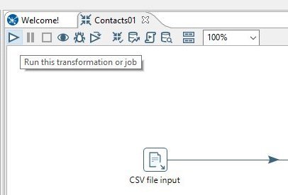 Now lets run our transformation. You can either click on the small triangle symbol at the top of the Contacts01 tab;